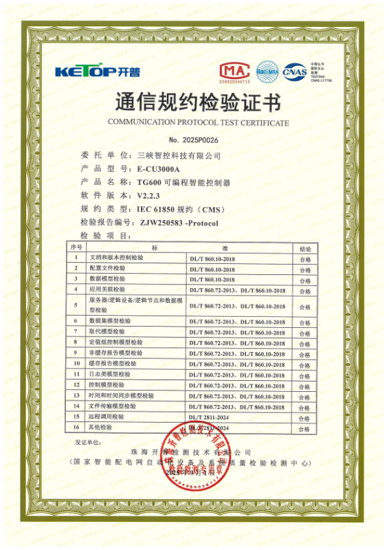 目前,TG系列全國產化智能勵磁系統已通過工信部電子五所全國產化認證和代碼安全審計、中國電科院型式試驗認證、華北電科院涉網性能檢測、開普實驗室“國家智能電網自動化設備及系統質量檢驗檢測中心”智能電站通信規約(IEC61850)檢測。